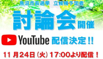 - お知らせ 魚沼市長選挙立候補予定者 討論会配信のお知らせ(YouTube配信)